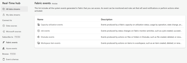We are excited to announce new event categories in Real-Time Hub in public preview.