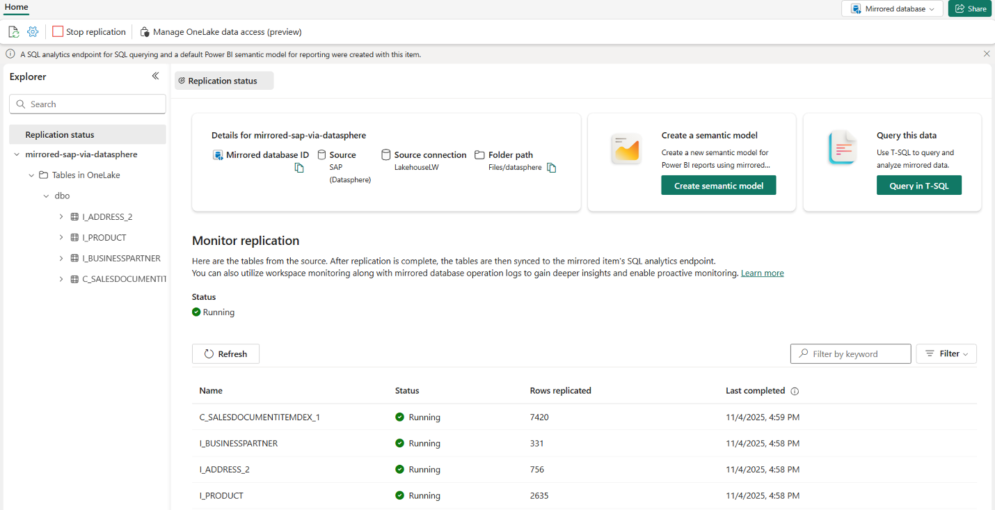To learn more about mirroring for SAP, refer to the Mirrored database from SAP documentation.