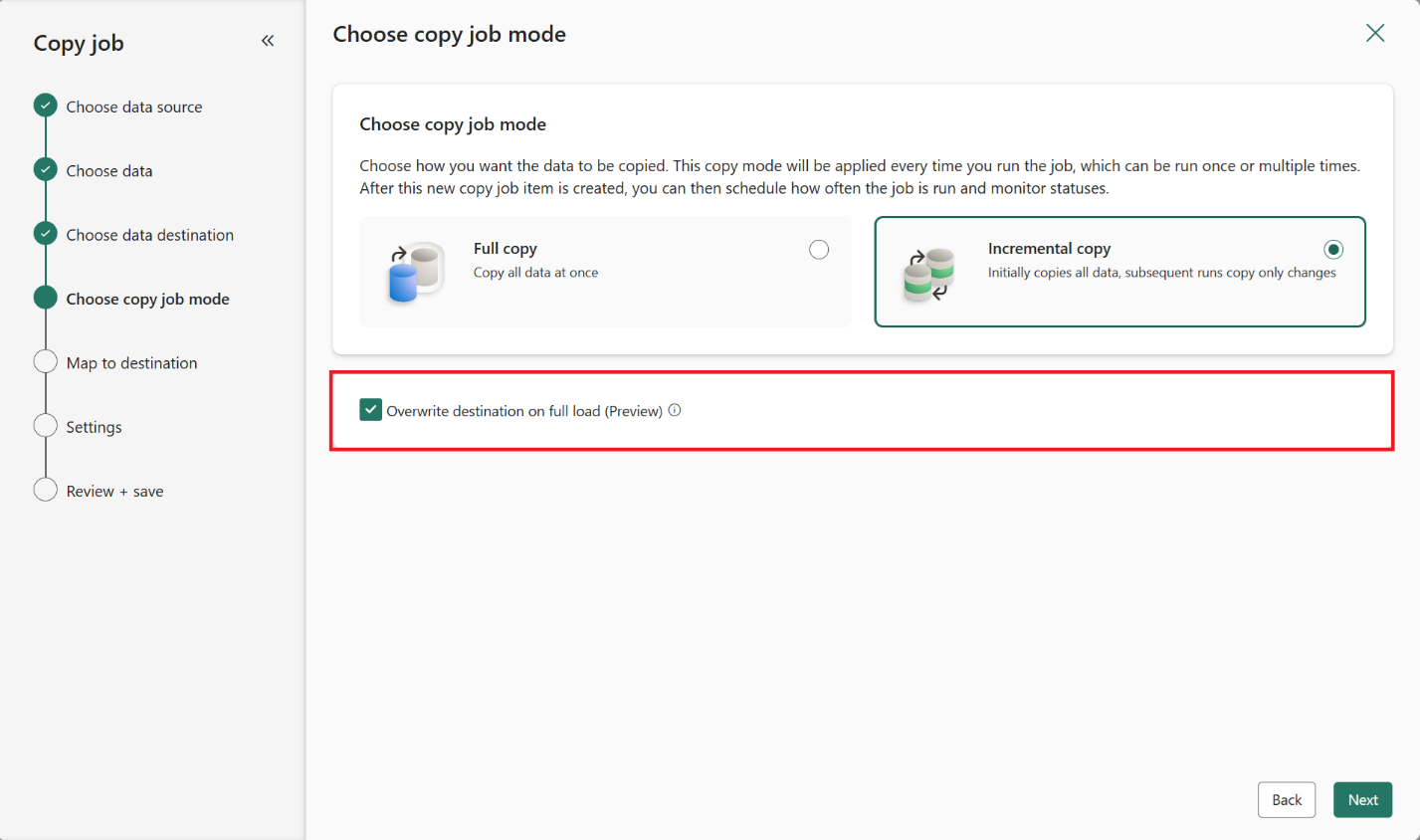 To learn more, refer to the Change data capture (CDC) in Copy Job (Preview) documentation.