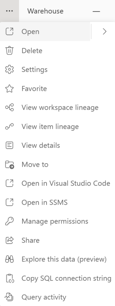• Context Menu Cleanup: ‘New Report’ and ‘New Paginated Report’ will be removed from the context menu of warehouses and SQL analytics endpoints.