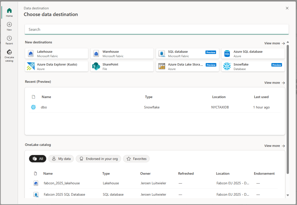 Snowflake (Sneak Peek) Dataflow Gen2 will support soon writing to Snowflake, allowing organizations to operationalize data pipelines across Fabric and Snowflake environments. This unlocks cross-platform scenarios where Fabric and Snowflake is used together for data preparation, orchestration, and serving results for your Power BI report. Expect the Snowflake destination shows up soon as a new destination you can now write to!