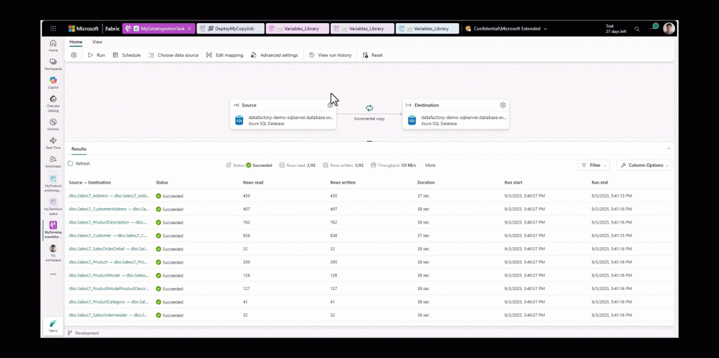 This powerful capability helps automate your CI/CD processes by externalizing connection values. With it, you can deploy the same Copy job across multiple environments while relying on the Variable Library to inject the correct connection for each stage. Meaning, you can seamlessly use different data stores for development, testing, and production—without modifying your Copy job each time.