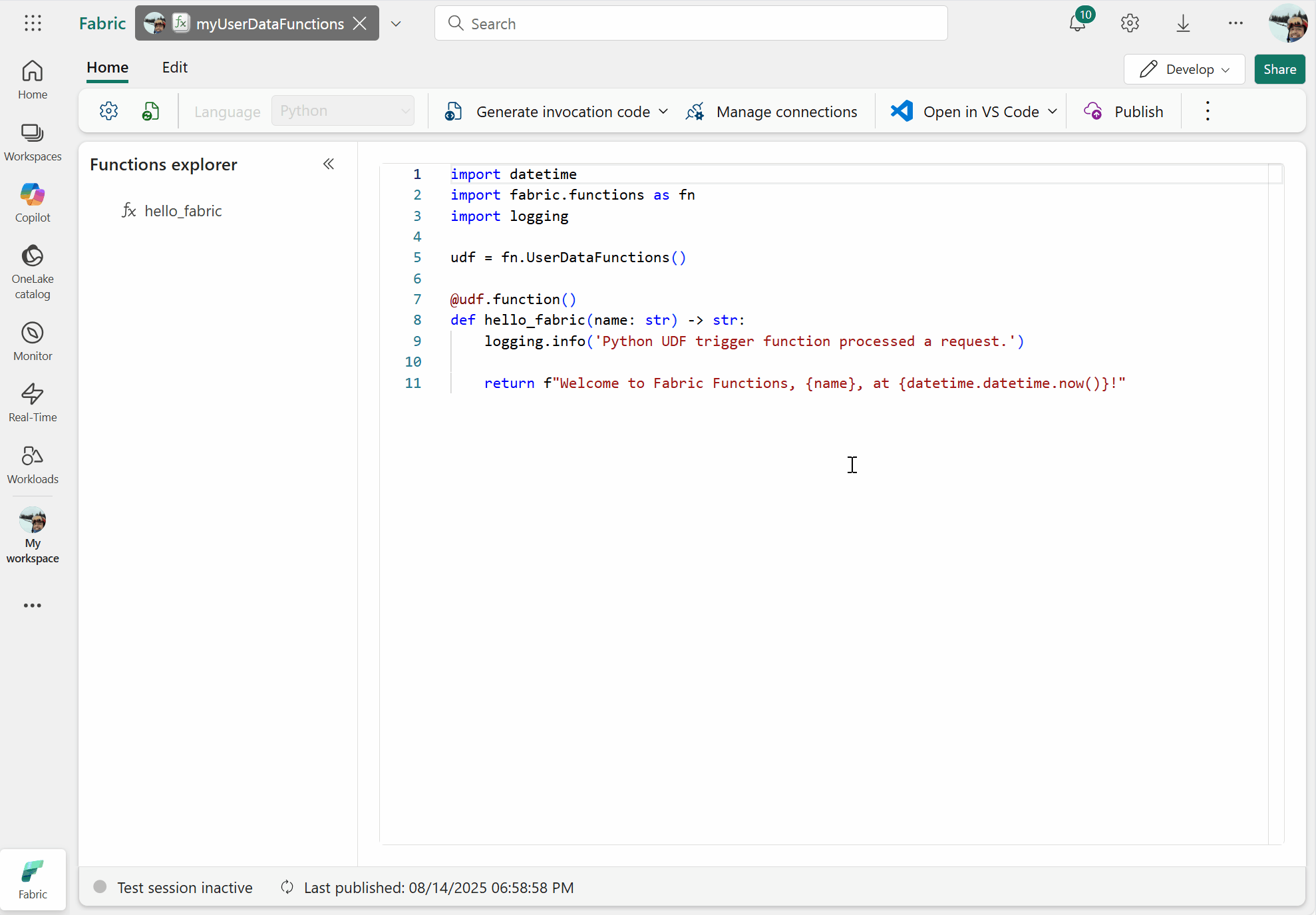 - Learn more about Fabric User Data Functions in the Microsoft Fabric docs.
