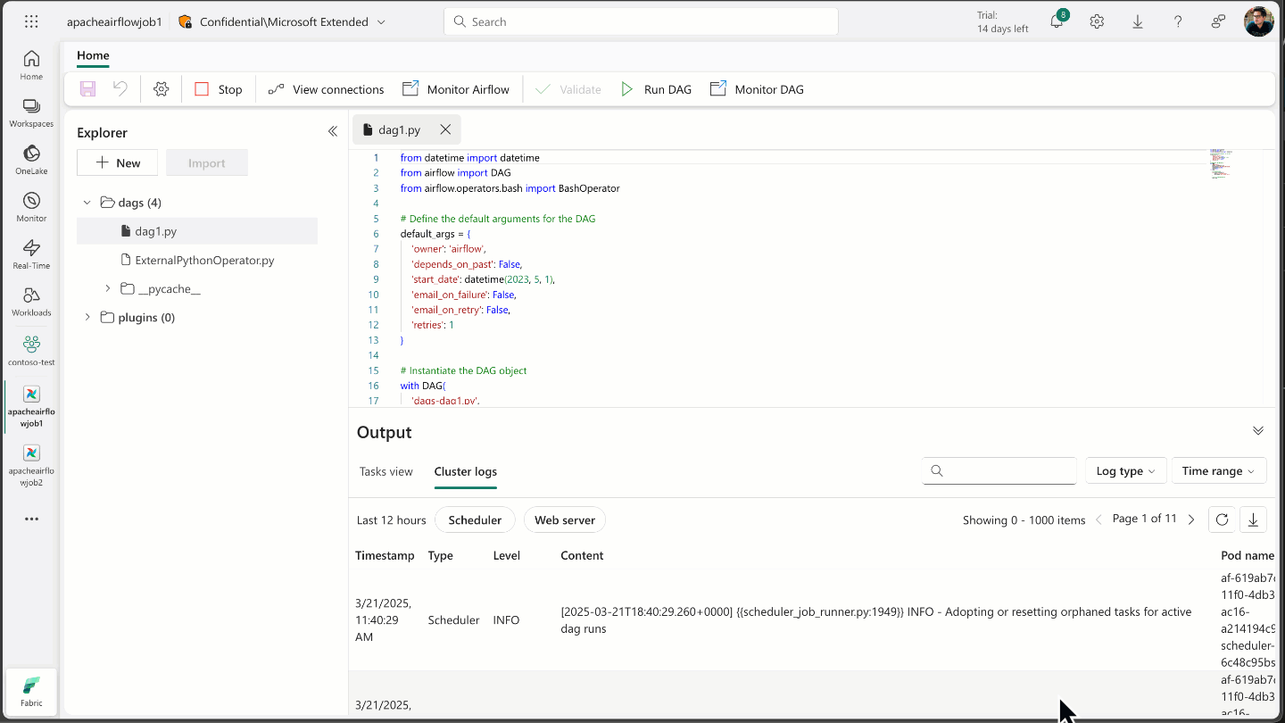 - Cloud-Based IDE: Create and edit Apache Airflow DAGs directly within Microsoft Fabric.