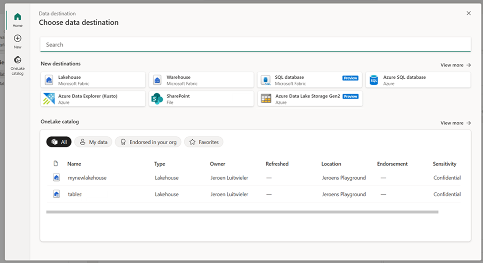 • OneLake Catalog integration for seamless discovery of Fabric destinations.
