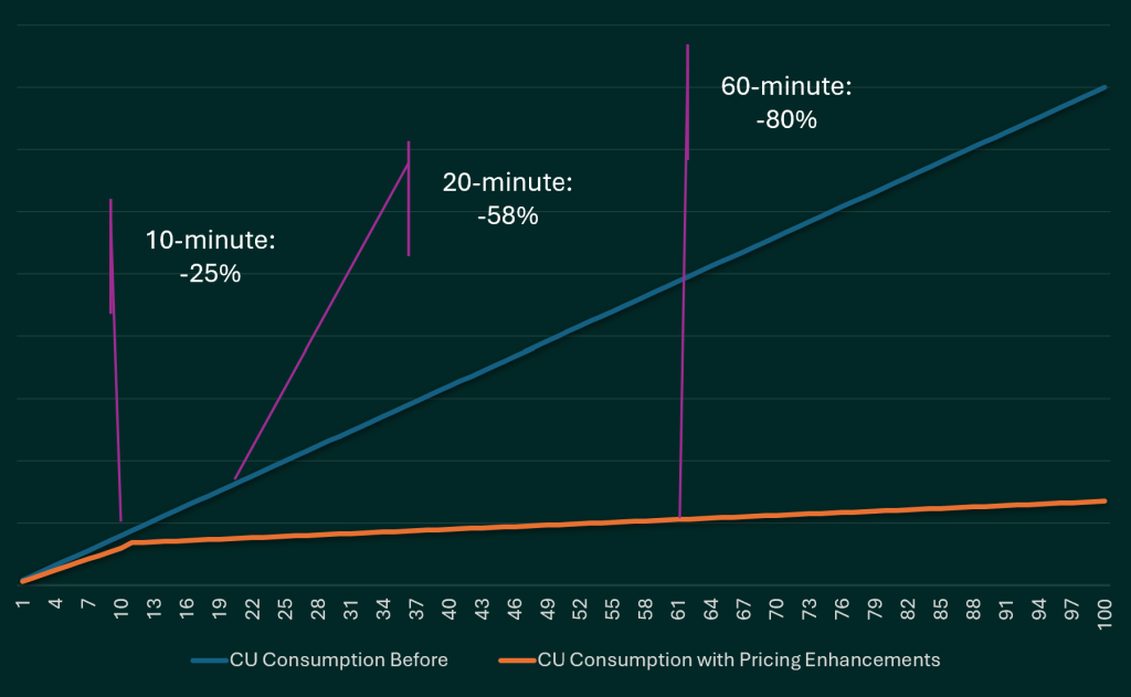 • Beyond 10 minutes for each query: billed at just 1.5 CU — a 90% reduction.